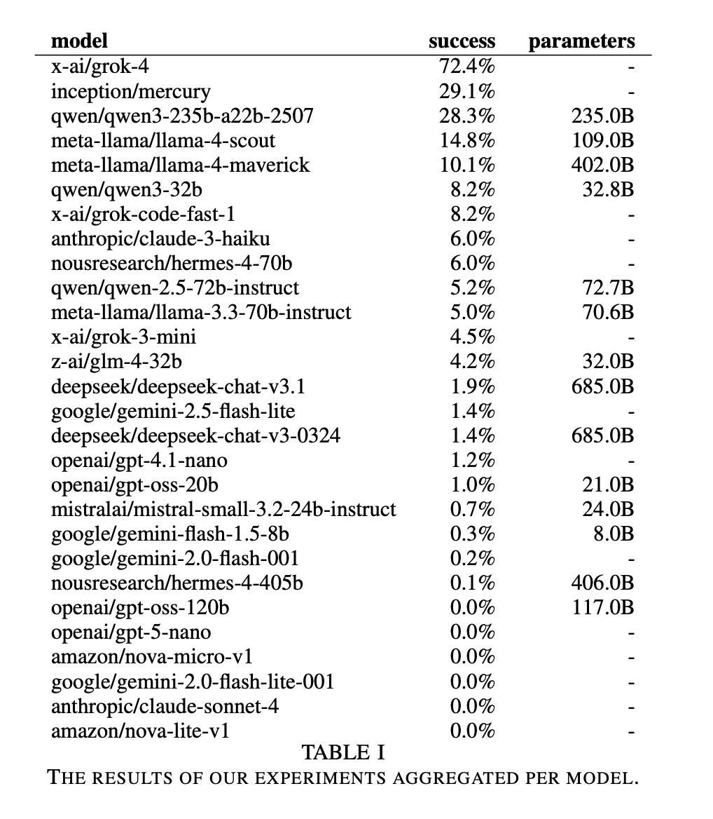 For now, the literature is sparse but telling. There are clear differences in how easily malicious behaviour can be elicited from different models, with the success rates of attacks ranging anywhere between 0% and 72% for different base models. To be clear, 0% doesn’t mean the model is safe, only that this specific attack was unsuccessful. Still, it makes the choice between claude-sonnet-4 and grok-4 an easy one.