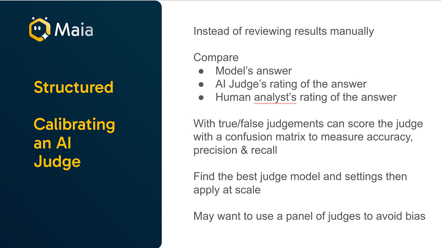 They then introduced an LLM judge to measure what Maia was producing. (seeing a theme here).