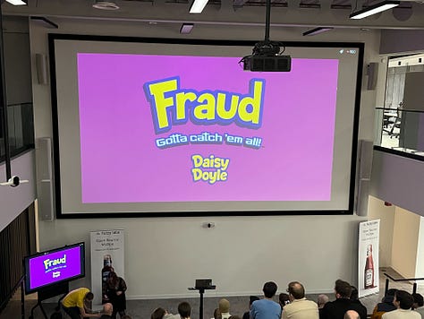 Settle in for three talks on fraud detection, interview intelligence, and digital data engineers - one with Pokémon scattered throughout, one apologising for the lack of Pokémon, and one warning us about “the world’s worst diagram.”